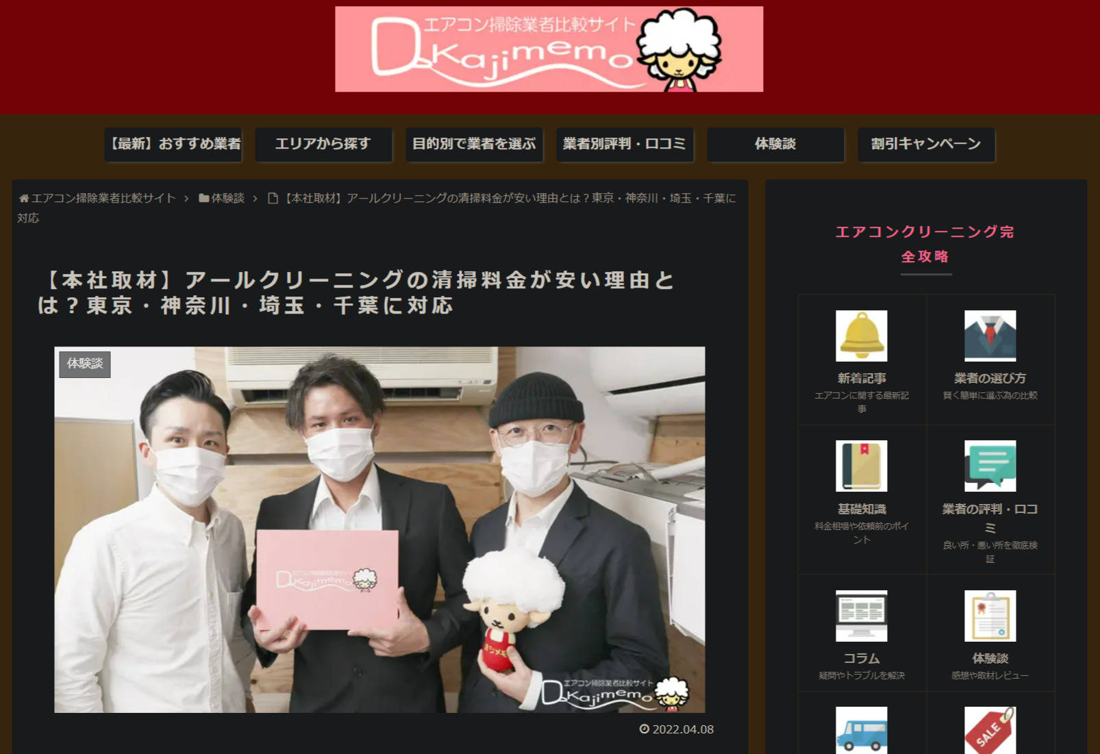 あえて“エアコンクリーニングに特化”したからこそわかった、本当におすすめな業者ランキング・最新の割引情報など、エアコンに関する総合情報をお届けするサイトカジメモさんにアールクリーニングが掲載されました。